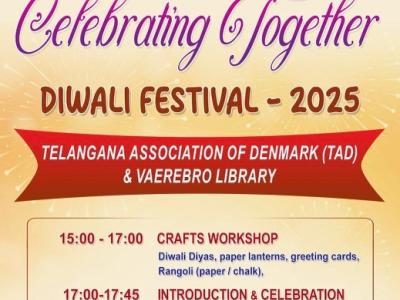Join us for a joyful celebration of Diwali, the Festival of Lights, together with the Telangana Association of DenmarkVærebro Bibliotek