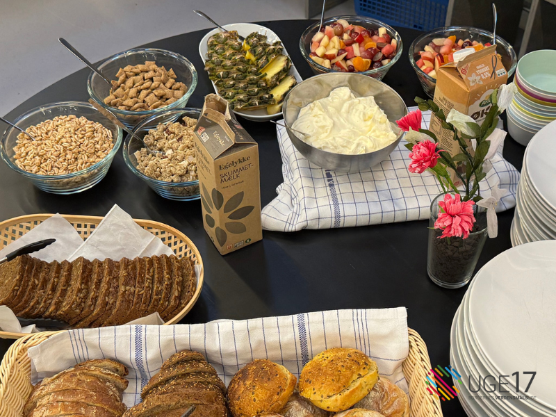 Hver onsdag kan du nyde et lækkert morgenmåltid sammen med andre, når vores frivillige stiller mad frem fra fødevarebanken og mad+.