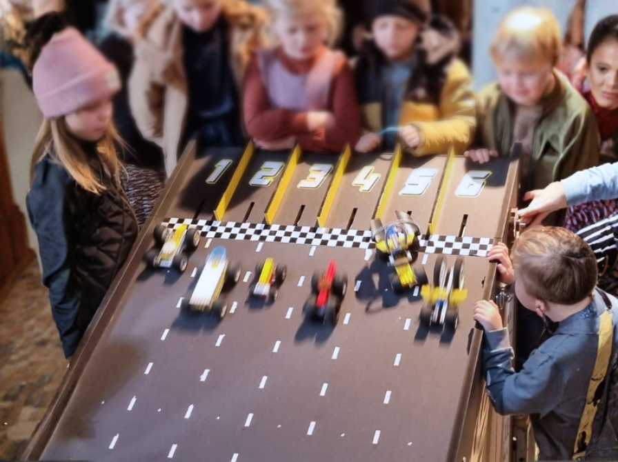 Der er ræs på Hovedbiblioteket - hvem kommer først? Byg din egen LEGO-bil og se om den kommer først over målstregen.