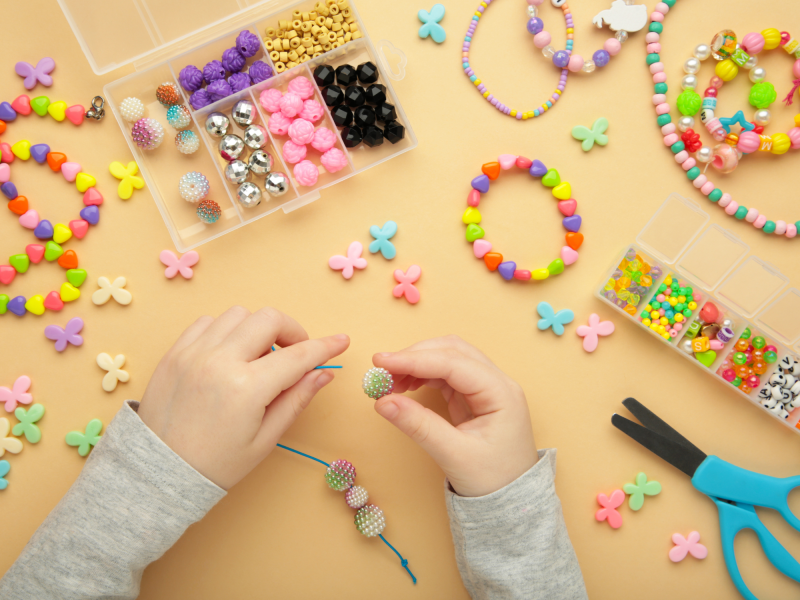Kom og vær kreativ på Mørkhøj Bibliotek, når vi laver smukke armbånd af perler.