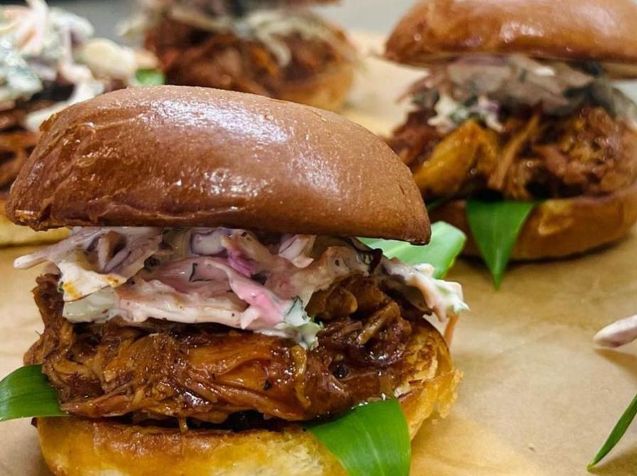 Pulled pork af nakkekam marineret i dry rub af vores egen hemmelige blend - Carolina BBQ sauce - Cole slaw