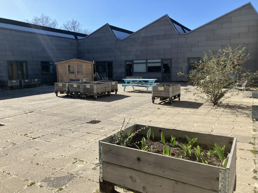 Savner du at kunne rode i jorden og dyrke dit eget, så er vores lille havefælleskab i Telefonfabrikkens atriumgård måske noget for dig!