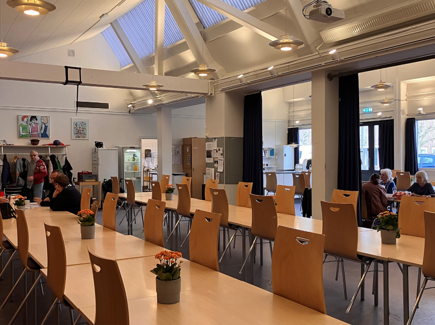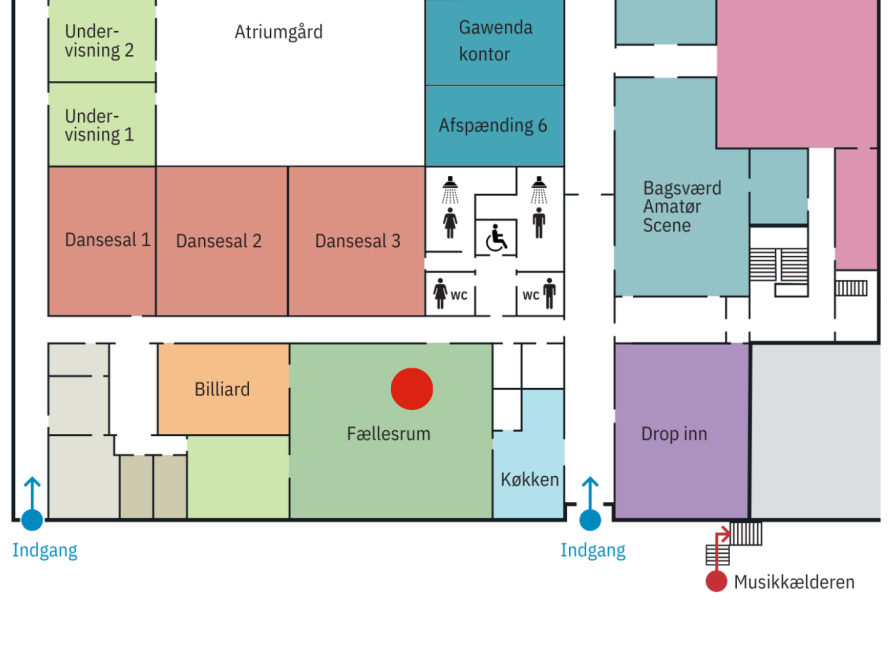 - Ved særopstilling kan lokalet rumme max. 150 personer. Kontakt administrationen, hvis du skal bruge ekstra borde og stole til et arrangement.